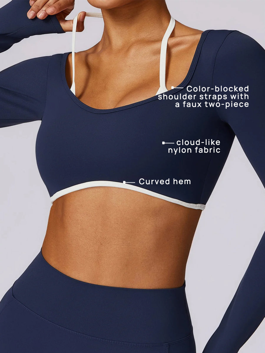 Arricchisci il tuo guardaroba sportivo con questa canotta dallo stile impeccabile, realizzata in un mix di nylon e spandex effetto nuvola che offre comfort e traspirabilità senza pari. Il tessuto eccezionalmente morbido e traspirante cade splendidamente sul corpo, mentre la struttura flessibile ed elasticizzata consente movimenti senza restrizioni anche durante le sessioni di allenamento più intense. L'esclusivo design "faux wrap" della canotta presenta eleganti spalline a contrasto che aggiungono un tocco moderno e alla moda, mentre l'orlo curvo evidenzia delicatamente il punto vita naturale per una silhouette elegante e affusolata. Unendo funzionalità ad alte prestazioni a un design raffinato, questa canotta versatile si adatta perfettamente allo studio e alla vita di tutti i giorni, offrendo comfort e stile per tutto il giorno.
