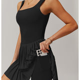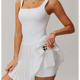 Arricchisci il tuo guardaroba con la nostra elegante gonna a pieghe a fisarmonica, pensata per aggiungere un tocco giocoso a ogni occasione. Questo capo chic è dotato di imbottitura toracica rimovibile, che ti permette di personalizzare vestibilità e supporto per il massimo comfort. Gli shorts integrati includono comode tasche laterali, perfette per tenere i tuoi oggetti essenziali a portata di mano mentre sei in movimento. Realizzata in tessuto leggero e traspirante, questa versatile gonna non solo è fantastica dal punto di vista estetico, ma è anche comoda, rendendola un'aggiunta essenziale al tuo guardaroba per uno stile e una funzionalità senza sforzo.