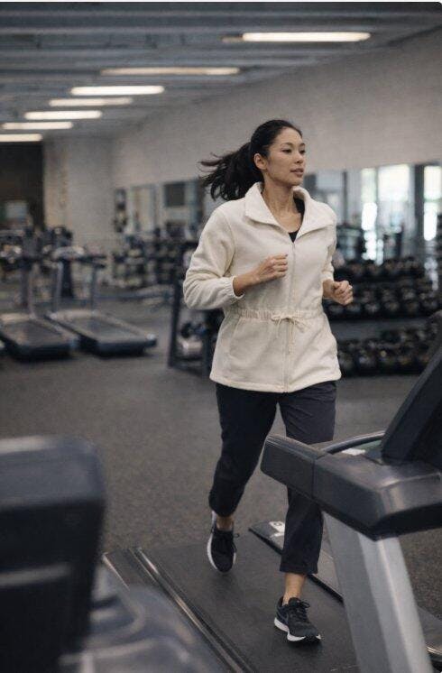 キブラのクラシックセット(ジャケット、ブラ、レギンス)を着ています! シルエットがすごく良くて、動きやすさも最高です 🥹💪 グレーのMサイズを選びました 🩶💙 トレーニングのモチベーションが爆上がりです!!🔥