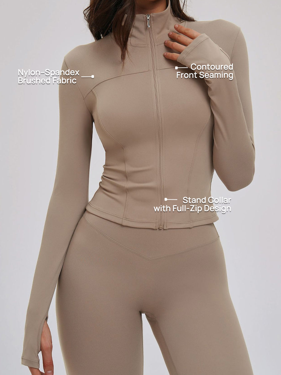 Brushed Stand-Collar Full-Zip Yoga Jacket