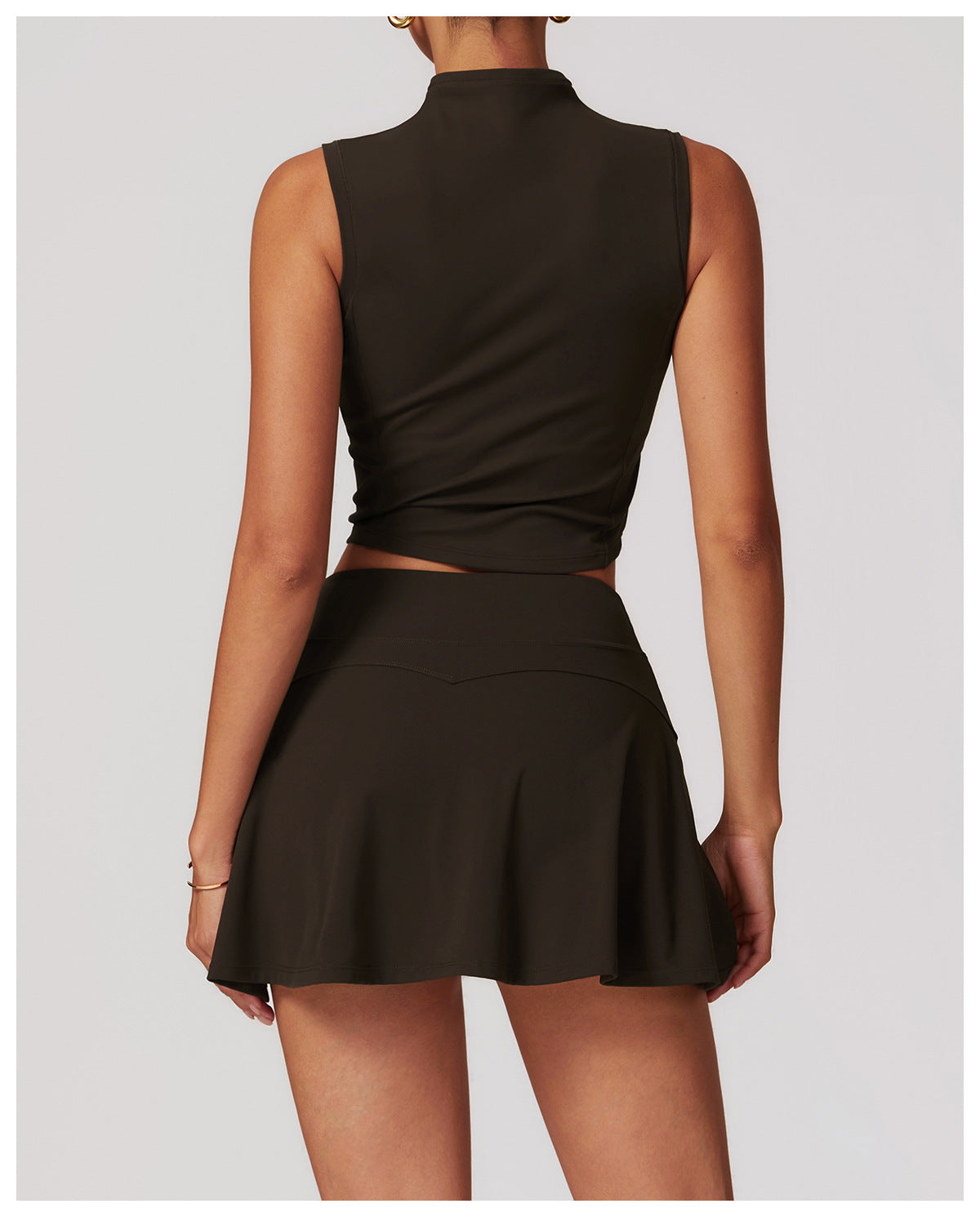 Elevate your active lifestyle with this premium activewear top, crafted from our signature cloud-like nylon fabric. The contoured seam lines on the bodice beautifully accentuate your natural curves, creating a sculpted, flattering silhouette. The high collar provides essential wind and weather protection for your shoulders and neck, making it the perfect companion for outdoor workouts and adventures. For added convenience, the removable padded cups allow you to seamlessly transition from the gym to the streets. Designed as a single, easy-to-wear piece, this versatile top delivers style, function and all-day comfort in one sophisticated package.
