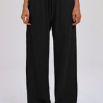 Loose, straight-to-wide leg silhouette delivers comfort, versatility, and effortless styling.