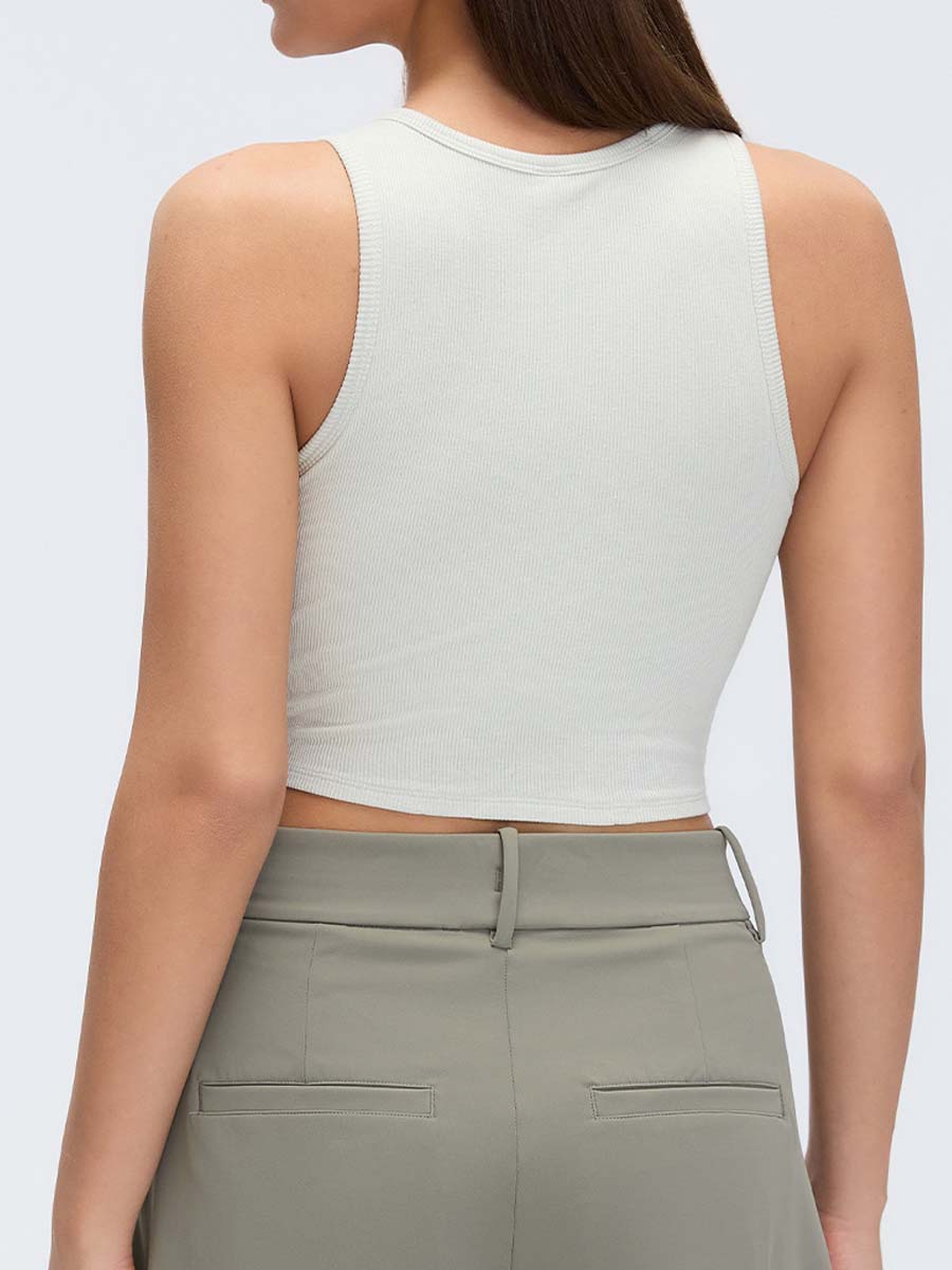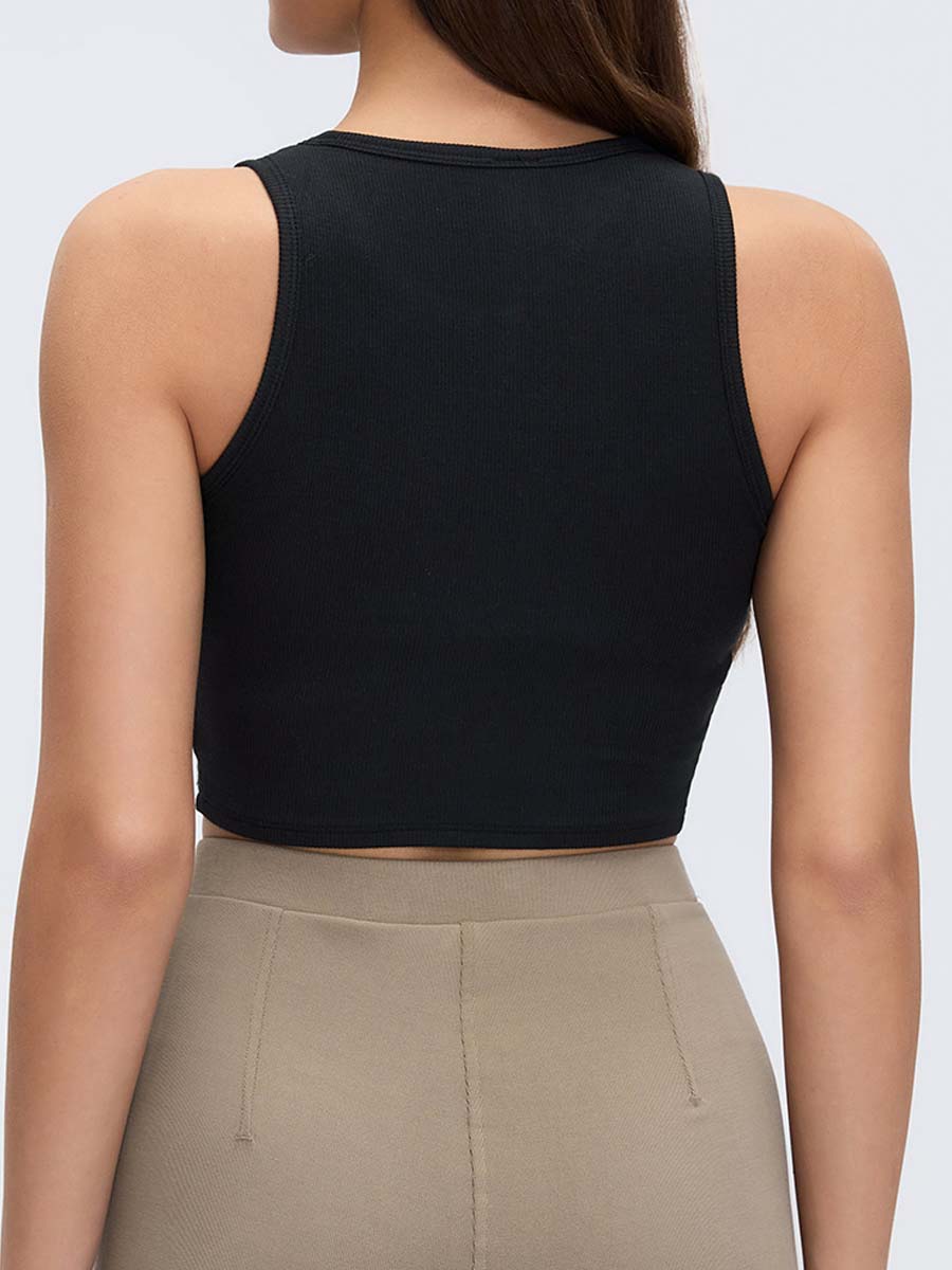Open-back design frees the shoulder blades, allowing natural movement and breathability.
