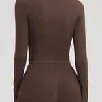 Waist-contouring and body-hugging for a streamlined, supportive fit during movement.